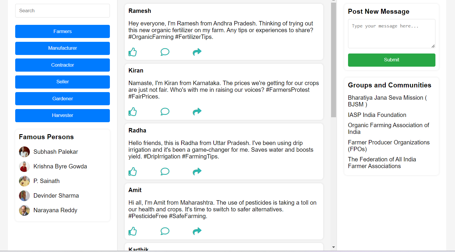 Custom accounts for farmers and buyers with tailored interfaces