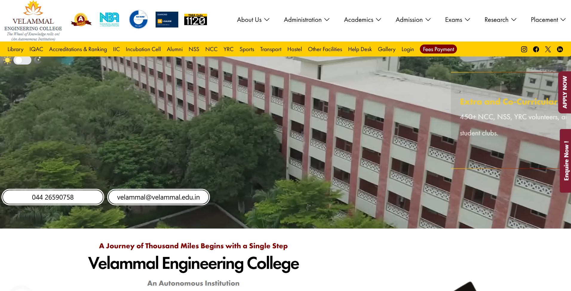 The VEC Website serves as the digital face of Velammal Engineering College, providing comprehensive information about events, achievements, academic programs, and institutional resources. Built with a focus on modern web technologies, the website incorporates responsive design principles ensuring compatibility across all devices—from desktops to smartphones.